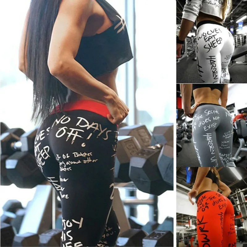 Leggings deportivos con estampado de letras para mujer, pantalones de yoga de cintura alta con efecto push up, mallas para correr y gimnasio